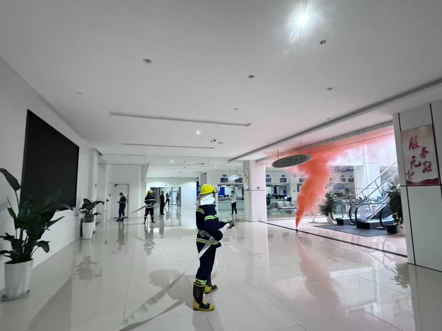 下午3时30分,3号花瓣二楼办事大厅火情警报突然响起,急促的警报声划破办公区的宁静,演练区域升起模拟烟雾。这场由遂宁市政务服务管理局联合专业物业团队组织的消防应急演练随即展开。演练过程中,从火情预警、人员疏散到伤员救治、火势扑灭,各环节衔接紧密,参演人员在5分钟内全部安全撤离至指定区域,模拟火情被成功处置。
