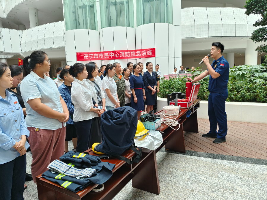 9月26日下午,遂宁市民中心组织进驻单位在市政务大厅开展消防应急培训演练,通过实战化演练提升突发事件处置能力,筑牢消防安全防线。