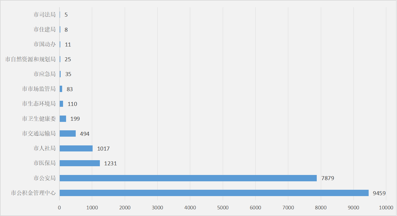 根据“一体化政务服务平台”统计,市政务服务大厅窗口办结共20556件,情况如下: